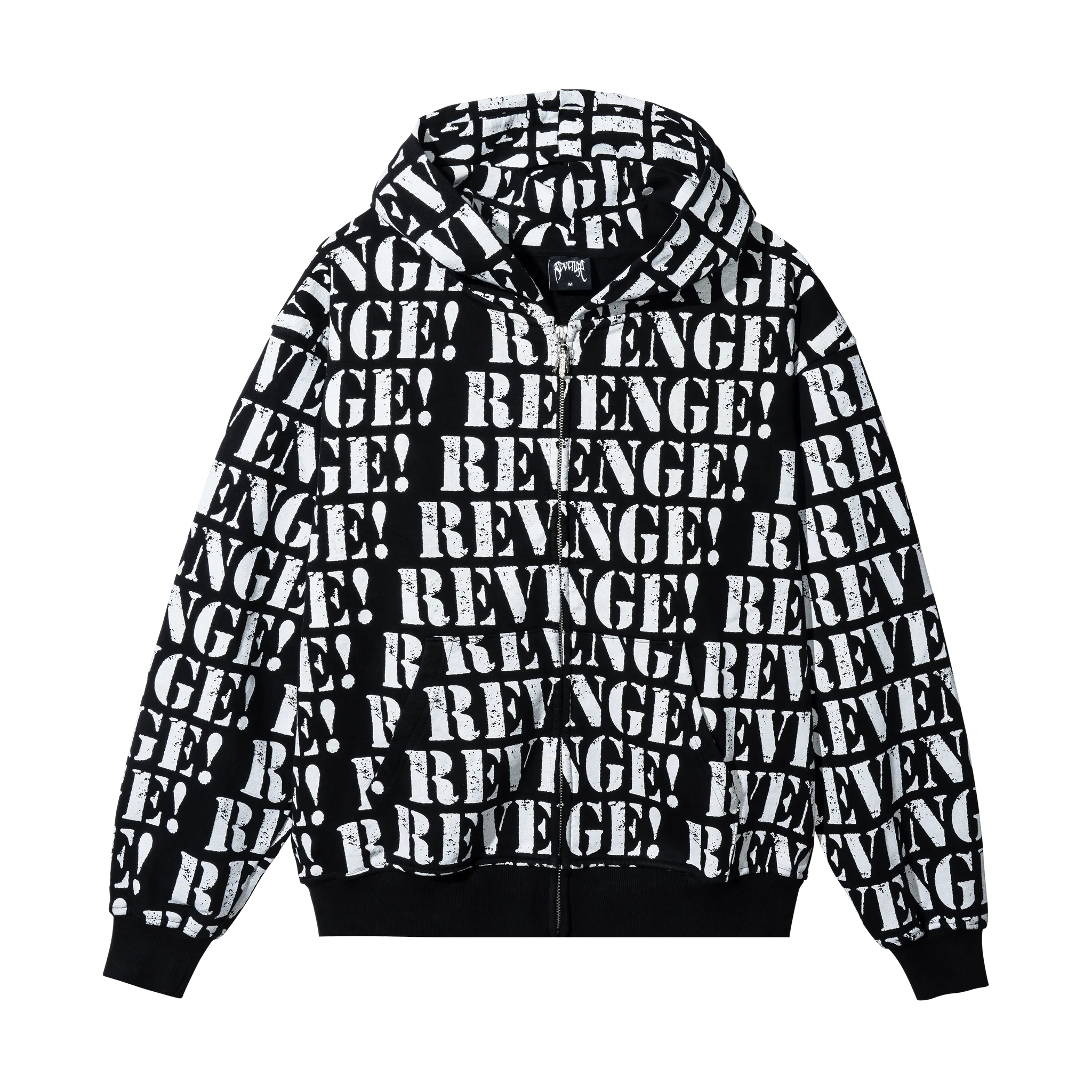 The Allover Logo Zip Hoodie Black White | Revenge offers standout streetwear style with a sleek, contemporary edge. Designed with a bold allover logo print, it’s crafted from heavy premium fabric that delivers warmth, comfort, and a relaxed, easy-to-wear fit. The full-zip design makes it ideal for layering in any season.