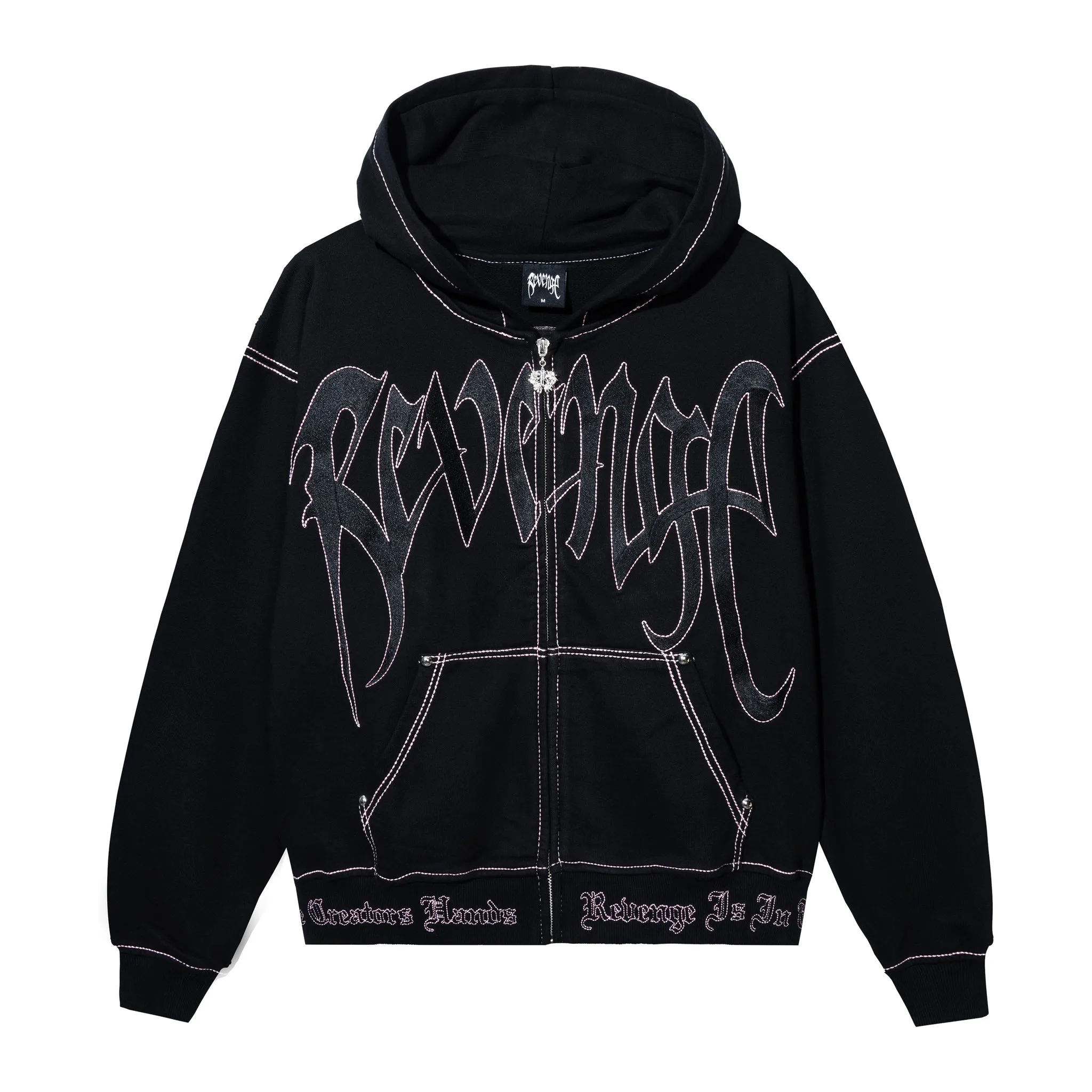 CONTRAST SKULL EMBROIDERED ZIP BLACK/PINK