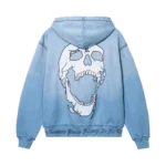 Make a statement with the Contrast Skull Zip Hoodie in washed baby blue and white. This street-ready hoodie blends bold style with everyday comfort, featuring a striking embroidered skull and a smooth, durable zip closure. Its soft, premium fabric and relaxed fit make it ideal for layering or casual wear.