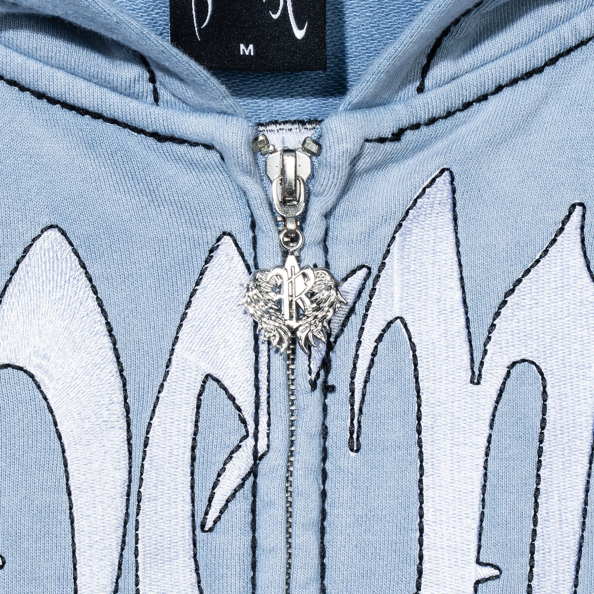 CONTRAST SKULL EMBROIDERED ZIP WASHED BABY BLUE/WHITE
