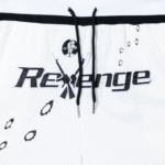 Step up your game with the REVENGE BULLETS BASKETBALL SHORTS WHITE. Designed for both performance and style, these shorts feature a lightweight, breathable fabric that keeps you cool and comfortable during intense workouts or casual wear. The elastic waistband with inner drawstrings ensures a secure, adjustable fit, while the above-the-knee length allows maximum freedom of movement.