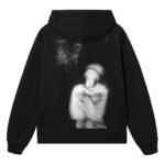 Featuring a classic drawstring hood and a spacious front pocket, it’s perfect for layering in any season. The vibrant red accents against the black base create a striking contrast, making this hoodie a must-have for anyone looking to combine comfort with a statement-making style.