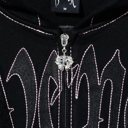 CONTRAST SKULL EMBROIDERED ZIP BLACK/PINK